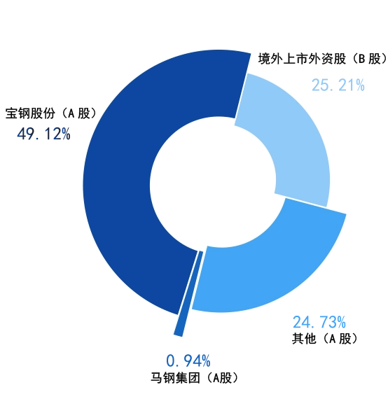 其中:人民币普通股(A股)2,146,928,818股,占总股本的74.79%(其中控股股东宝钢股份持有1,410,134,219股,占总股本的49.12%,关联股东马钢集团持有26,819,455股,占总股本的0.94%)